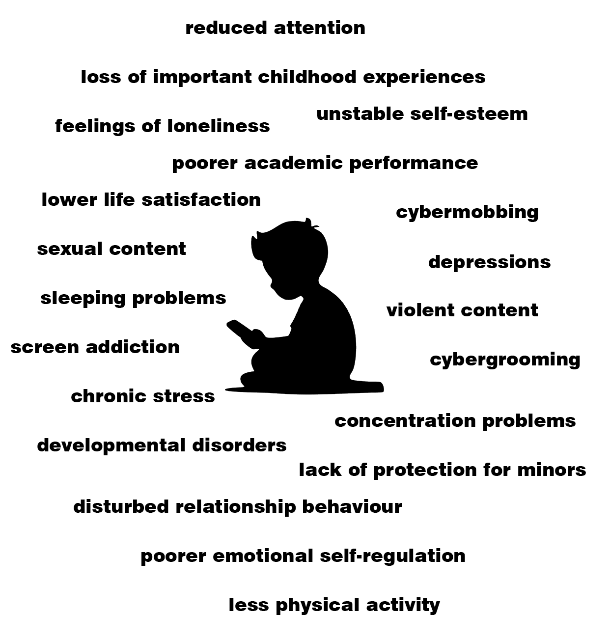 Childhood changes as soon as a child has their own smartphone. There is less time for playing outside, being creative, reading, exercising, spending time with friends and family, or simply being bored, as WhatsApp, Instagram, TikTok, YouTube, and computer games seem much more appealing. If a child spends time in front of a screen every day, important childhood experiences are lost.