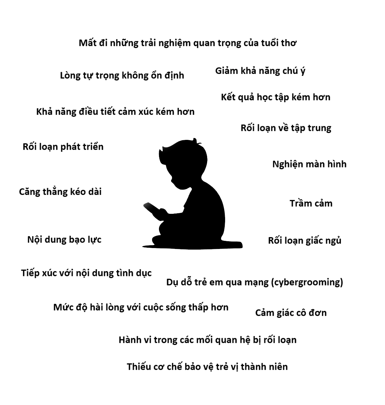 Tuổi thơ bắt đầu thay đổi khi một đứa trẻ sở hữu điện thoại thông minh riêng. Thời gian dành cho việc chơi ngoài trời, sáng tạo, đọc sách, vận động, ở bên bạn bè và gia đình dần ít đi. Ngay cả những lúc rảnh rỗi, khi trẻ tự nghĩ ra trò chơi, tự tưởng tượng hoặc chỉ ngồi yên không làm gì cũng không còn nhiều như trước. Trong khi đó các ứng dụng như Whatsapp, Instagram, TikTok,Youtobe hay trò chơi điện tử lại rất hấp dẫn. Việc dành thời gian trước màn hình mỗi ngày có thể khiến trẻ đánh mất những trải nghiệm quan trọng của tuổi thơ.